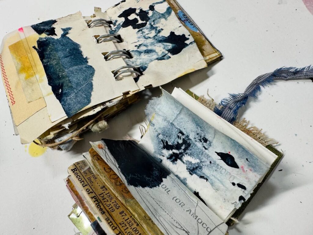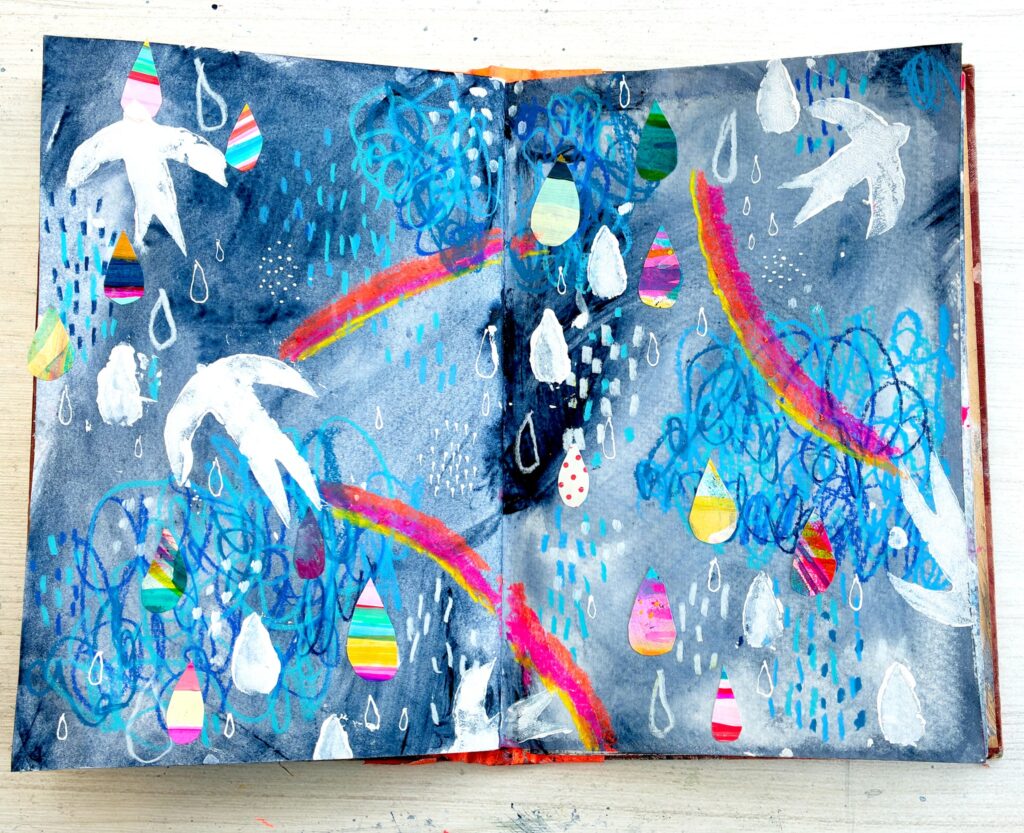 Kristin created her own custom tissue full of the colors of the skies. Usable like any other tissue papers, but completely customizable, it’s the perfect addition to your mixed media arsenal.